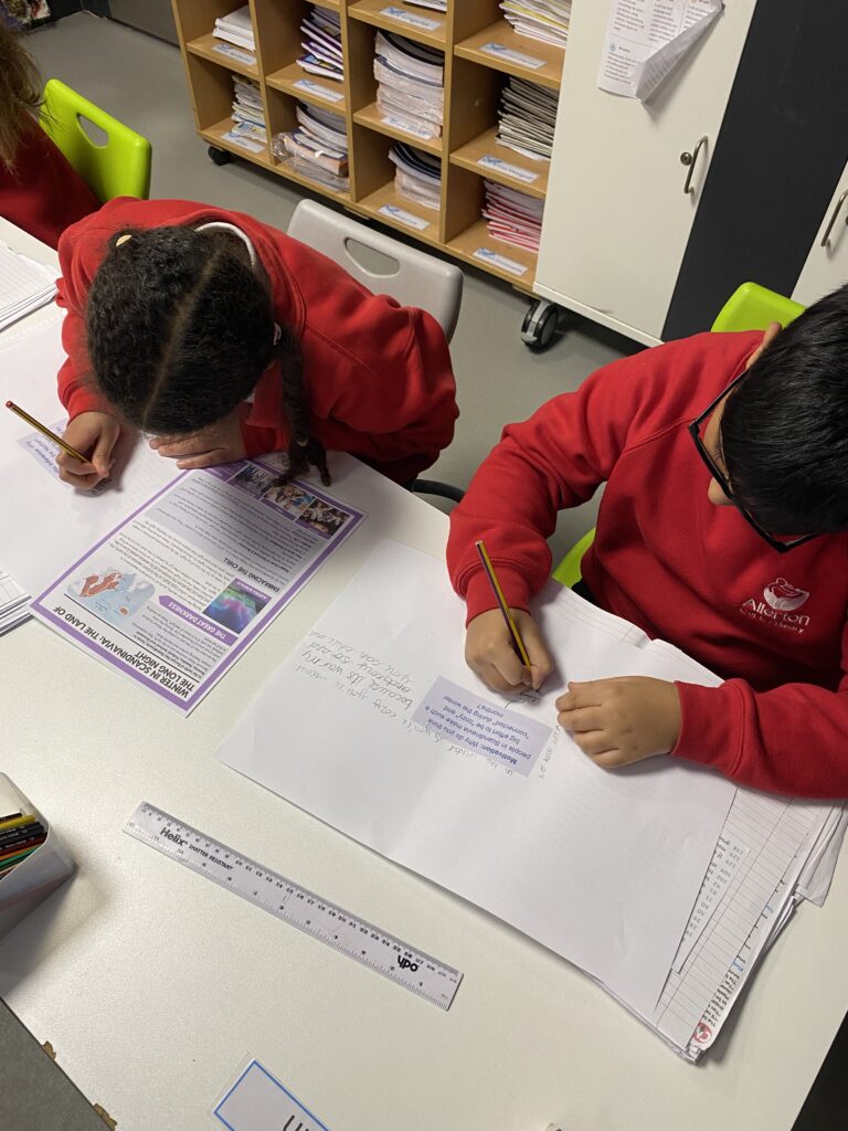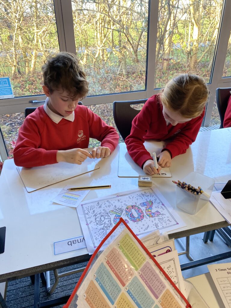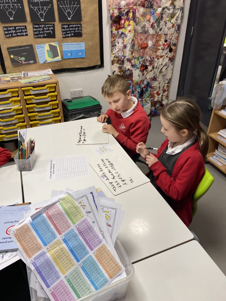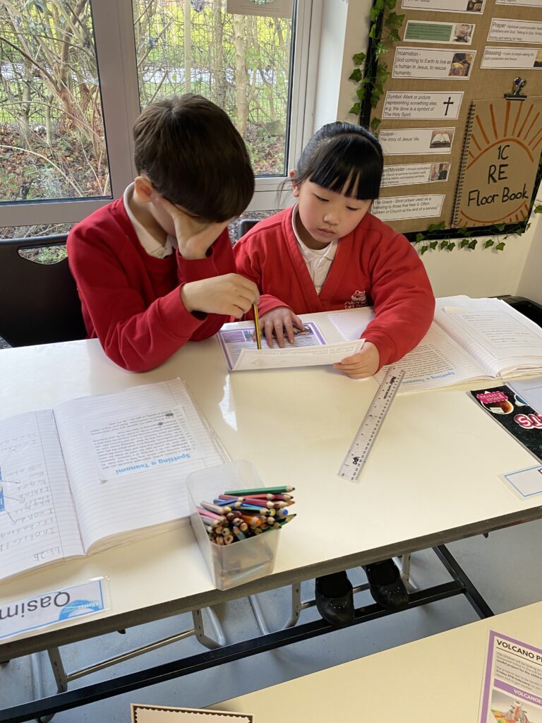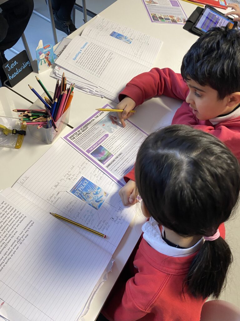 They have been enjoying working in pairs across all aspects of their learning. The pictures show them working together in reading to discuss the answer to questions, exploring the text in more depth and inferring meaning from what they have read.